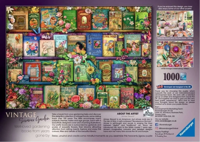 Uživajte ure mirne zabave s kakovostno sestavljanko Ravensburger. Motiv poletnega vrta v knjižnem slogu bo razveselil ljubitelje literature, narave in podrobnih ilustracij. Zahvaljujoč natančnemu izrezu se koščki popolno ujemajo, zato je sestavljanje tekoče in prijetno.