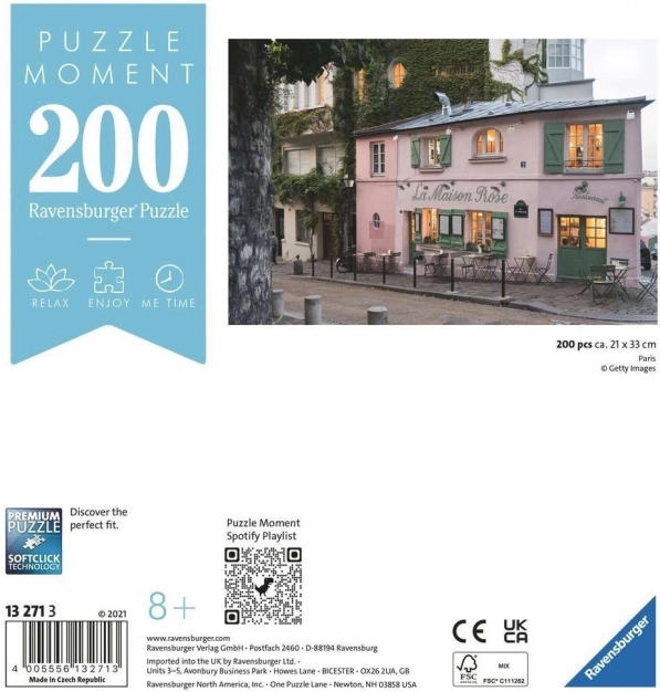 Uživajte v sproščujočih trenutkih s sestavljanko Ravensburger, ki vas popelje v srce Pariza – od prijetnih kavarn do slavnih bulvarjev in ikoničnih znamenitosti. Zaradi vrhunske kakovosti izdelave se koščki zlahka sestavljajo in trdno držijo, kar zagotavlja prijetno izkušnjo tako za začetnike kot tudi za izkušene sestavljavce.