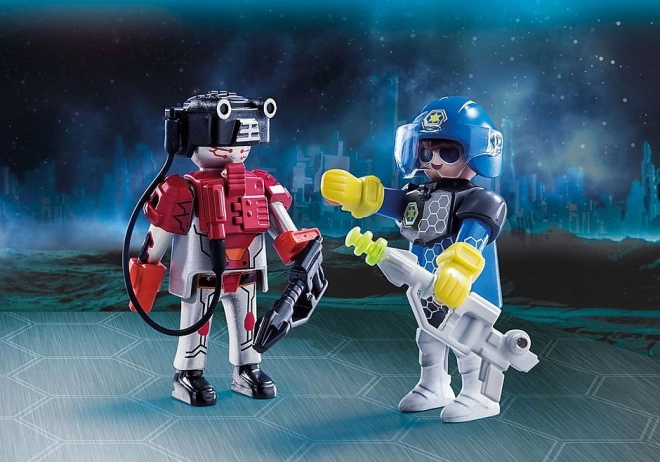 Podajte se v globine vesolja in skrbite za red s pogumnim policistom ali pa preizkusite srečo v vlogi prebrisanega tatu. Ta kompaktni set je izvrsten dodatek k vsem vesoljskim kompletom PLAYMOBIL in nudi takojšnjo zabavo brez zahtevnega sestavljanja.
