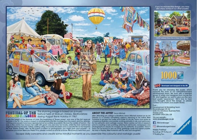 Odkrijte veselje do sestavljanja s sestavljanko RAVENSBURGER »Festival cvetličnih otrok«. Zahvaljujoč natančni izdelavi in kakovostnemu kartonu vsak košček natančno pristaja, kar zagotavlja tekoče sestavljanje in čudovito končno podobo. Motiv, poln cvetja, podrobnosti in nežnih barv, bo razveselil ljubitelje umetniških ilustracij in izkušene sestavljavce.