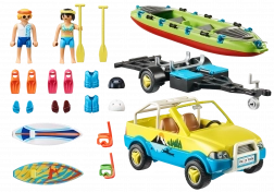 Set PLAYMOBIL FAMILY FUN plažni avto s prikolico za čoln prinaša pisan svet poletnih dejavnosti – od valov za deskarje do umirjenega veslanja v kanuju. Robustno vozilo z nosilci za deske in prikolico za čoln ponuja številne igralne scenarije in zlahka obvlada vsak izlet k vodi.