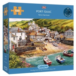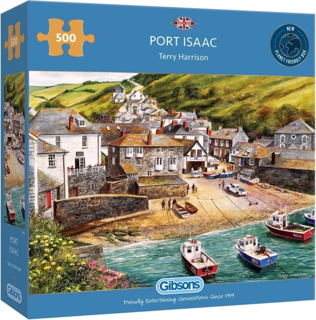 Odkrijte čar severnega Cornwalla z očarljivim motivom slikovitega pristanišča Port Isaac. Visokokakovostna izdelava znamke GIBSONS zagotavlja natančne koščke, žive barve in prijetno izkušnjo sestavljanja. Idealna izbira za ljubitelje potovanj, narave in mirnih morskih prizorov.