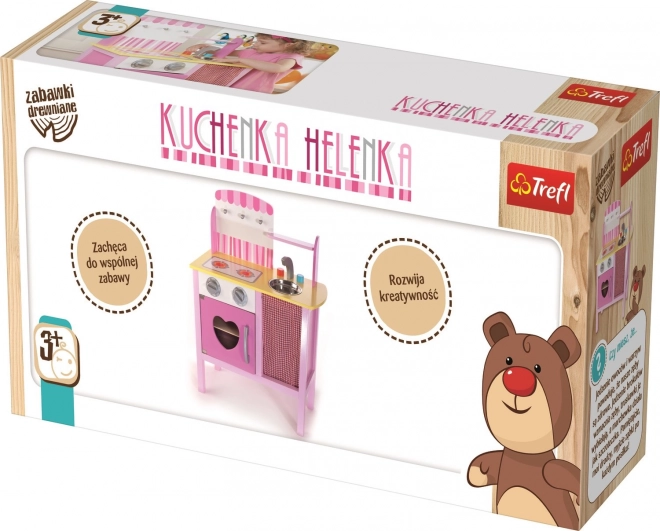 Otroška kuhinjica Helenka TREFL je stilska lesena igrača, ki otroke popelje v svet kuhanja. Zahvaljujoč realističnim elementom, kot so štedilnik s pečico, korito in praktičen shranjevalni prostor, bodo otroci urili fino motoriko in socialne veščine pri igri vlog.