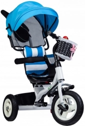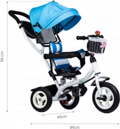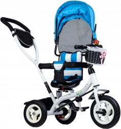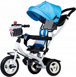 Ta tricikel znamke ECOTOYS je zasnovan tako, da vašemu otroku nudi varnost in udobje med igro in na sprehodih. Mehko naslonjalo skupaj z varnostnimi pasovi in zaščitnimi letvicami zagotavlja, da otrok ostane varno na mestu. Preklopna strešica ščiti otroke pred neugodnimi vremenskimi vplivi, vrtljiv sedež pa olajša vstopanje in izstopanje.