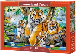 Sestavljanje sestavljank je ustvarjalna zabava, ki razvija pozornost, uči vztrajnosti in uri koncentracijo. Ta sestavljanka s 1000 koščki prikazuje Tigre ob potoku in ponuja ure zabave za posameznike ali skupine.