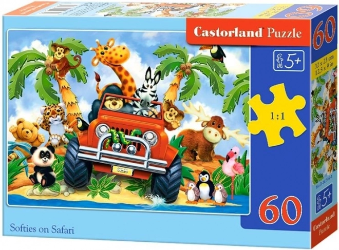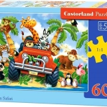 Ta sestavljanka za otroke prinaša veselo safari ilustracijo, ki vabi k odkrivanju oblik in barv. Zahvaljujoč 60 koščkom in prijetni velikosti posameznih delov je odlična za predšolske in mlajše šolske otroke. Končna slika meri 32 × 23 cm, zato jo je enostavno sestavljati na mizi ali podlogi.