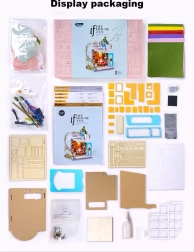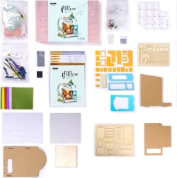 Komplet je dobavljen v razstavljenem stanju in vsebuje vsa potrebna orodja, vključno z lepilom, barvami in čopičem. Pri sestavljanju se večinoma uporablja že izrezane dele iz vezane plošče, kartonske in tekstilne elemente. Za udobno montažo osvetlitve priporočamo uporabo polokroglih klešč, zadostujejo pa tudi navadne škarje.