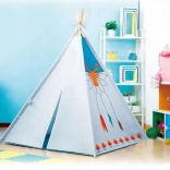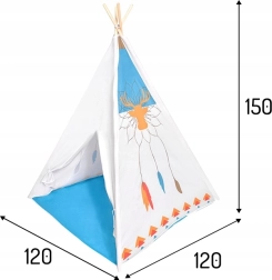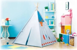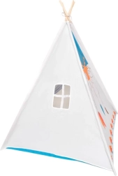 Postavitev je enostavna in hitra: lesene palice le povežete in na vrhu zavežete. Prevleka je iz odpornega poliestra, podloga pa poveča udobje tudi na hladnih tleh. Zavihljiv vhod in okence zagotavljata kroženje zraka in igrivo vzdušje. Po igri tipi preprosto zložite in pospravite v omaro.