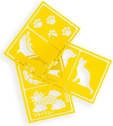 Odkrijte preprost način za ustvarjanje izrazitih vzorcev in ornamentov. Tematsko usklajen komplet vključuje motive z živalmi ter ikone, kot sta mavrica in priznanje. Šablone so idealne za začetnike in napredne, ki želijo natančne obrise brez razmazovanja.