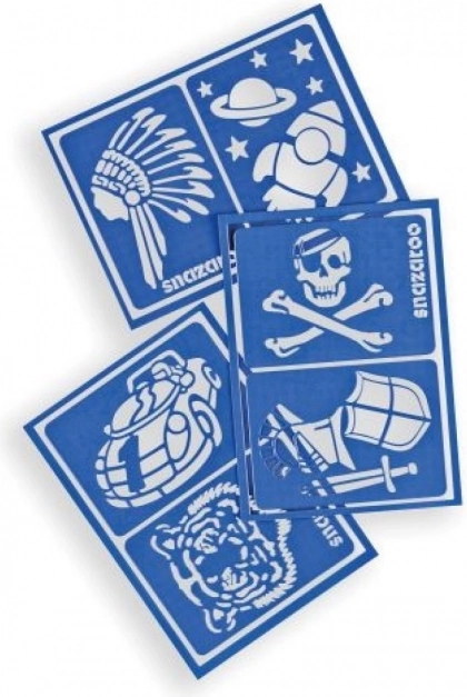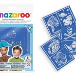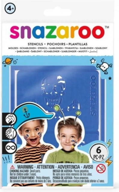 Odkrijte avanturistični set šablon SNAZAROO z motivi piratov, Indijancev in vesolja, ki vašo poslikavo obraza dvigne na novo raven. Šablone imajo samolepilno podlago, zato trdno držijo na mestu, njihov prožen material pa se prilagodi krivinam obraza in rok.