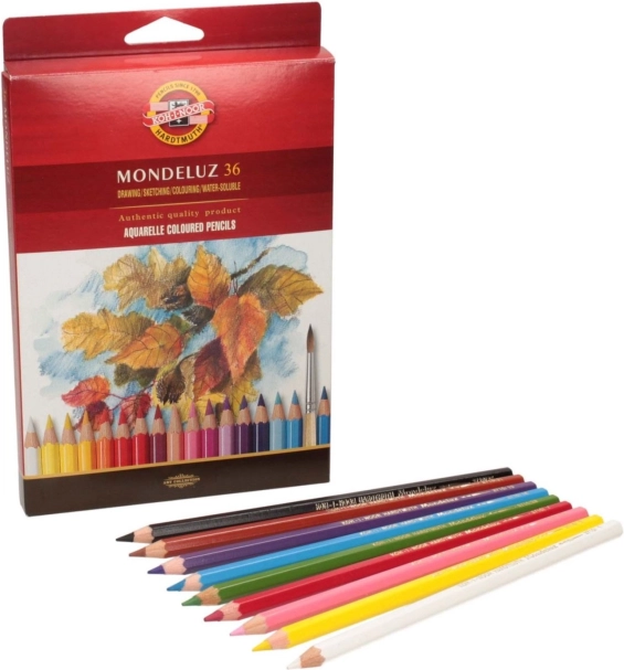 Set akvarelnih barvic KOH-I-NOOR MONDELUZ v številu 36 kosov je idealen za natančno risbo in slikanje z vodo. Pigmenti se odlikujejo po odlični svetlobni obstojnosti in čistosti barv, zato bodo vaša dela dolgo ostala jasna in izrazita. Ob stiku s čopičem in vodo se sled lepo razmaže ter omogoča doseganje učinkov, značilnih za akvarel.
