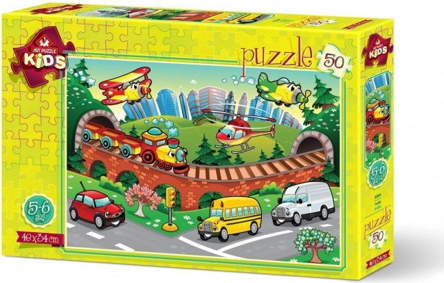 Odkrijte zabavno otroško sestavljanko z motivom mestnega prometa. Sestavljanka s 50 koščki je idealna za razvoj fine motorike in logičnega mišljenja. Velikost po sestavljanju je približno 48 × 34 cm, koščki so trdni in prijetni na dotik. Odlična kot darilo in za skupno družinsko igranje. 50 koščkov, velikost 48 × 34 cm, poučen motiv prometa.
