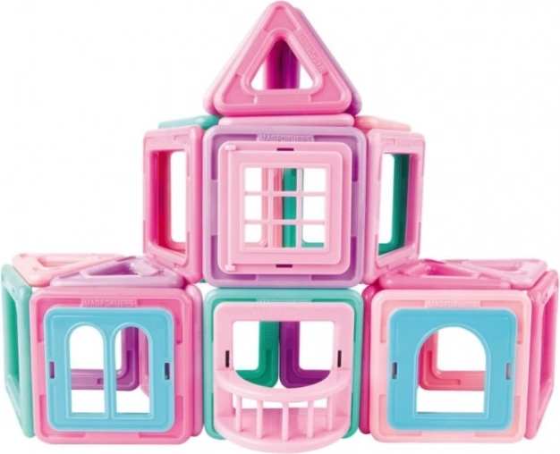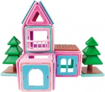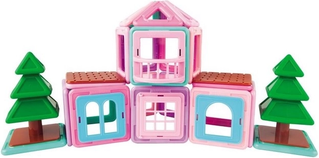 Magformers Mini House je lepo zasnovan in odlično sestavljen set, ki vsebuje 42 kosov. Je izvrstna gradbena igrača za vsako arhitektko in je opremljena s posebnimi clip-in dodatki, namenjenimi gradnji stavb – kot so balkon, okna in vse potrebno za gradnjo hiše sanj v pastelno rožnati in turkizni barvi. Zgradite lahko karkoli, od hišk, koč do počitniških hiš, in to vključno z drevesi. Set vsebuje 18 kvadratov, 12 trikotnikov, 1 enokrilno okno, 1 dvokrilno okno, 1 deljeno okno, 1 balkon, 6 zidakov polnil in 2 drevesi. Primerno za otroke od 3 let. Število kosov: 42. Kreativna magnetna gradbena igra Magformers omogoča sestavljanje velikega števila tridimenzionalnih objektov s pomočjo dvodimenzionalnih plastičnih mnogokotnikov. Magformers uri fino motoriko, spodbuja ustvarjalnost, uči otroke barve in osnovne geometrijske oblike. Dimenzije kosov in premišljeno izbrane oblike zagotavljajo največjo možno varnost igrače. Material, iz katerega je sestavljena gradbena igra, izpolnjuje najstrožje higienske in zdravstvene kriterije. Kosi so dovolj veliki, da jih ni mogoče pogoltniti, in so praktično nezlomljivi. MAGFORMERS je mogoče zelo dobro kombinirati tudi z znano magnetno gradbeno igro Geomag.