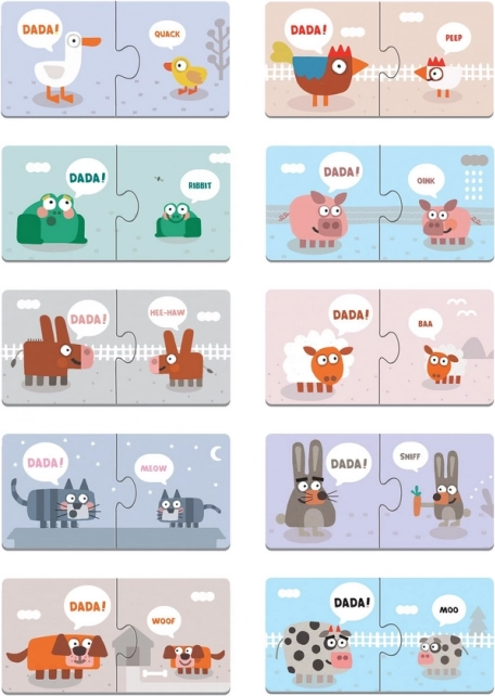Ta komplet vsebuje 10 samostojnih mini sestavljank, pri katerih je vsaka sestavljena iz 2 koščkov – idealno za otroke, ki s sestavljankami šele začenjajo. Koščki so veliki, trdni in enostavni za prijemanje, da jih lahko otroci zlahka sestavljajo ter se osredotočijo na odkrivanje novih besed in slik.