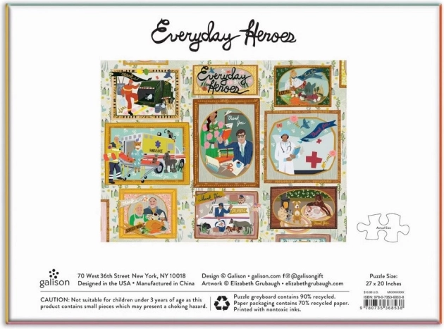 Potopite se v svet vsakodnevnih junakov s to čudovito sestavljanko priznanega angleškega proizvajalca Galison. Odlična izbira za ljubitelje sestavljank, ki iščejo nove izzive. Sestavljanje te sestavljanke vas bo zabavalo dolge ure ob ustvarjanju osupljive slike.