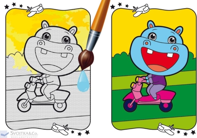 Odkrijte zabavne pobarvanke Slikanje z vodo – potovanja, ki vsako kapljico vode spremenijo v barvo. Otroci ne potrebujejo barvic ali barv, zadostujeta kozarec vode in čopič. Ko z mokrim čopičem potegnete preko sivih pik, se slike same pobarvajo in prinesejo takojšnje veselje.