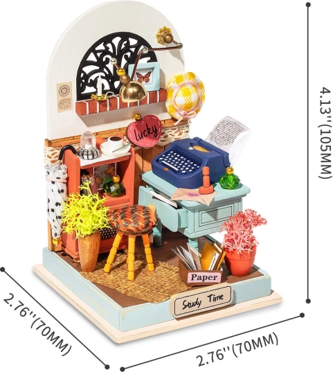 Uživajte v oblikovanju lastnega prijetnega prostora za pisanje dnevnika s to podrobno miniaturo. Sestavljanka prinaša ure zabave in ustvarjalnosti, saj morate vsak del sami pobarvati in zlepiti. V kompletu je vse potrebno – od priloženega lepila do čopiča in barv. Ustvarite popoln kotiček v vaši sobi.