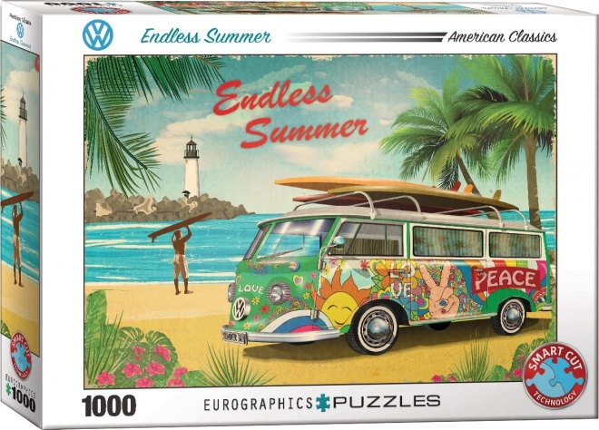 EUROGRAPHICS sestavljanka Neskončno poletje ponuja ustvarjalen izziv za vse ljubitelje sestavljank. Neobičajne oblike kosov in edinstveno štancanje povečujejo zahtevnost sestavljanja tega čudovitega kosa.