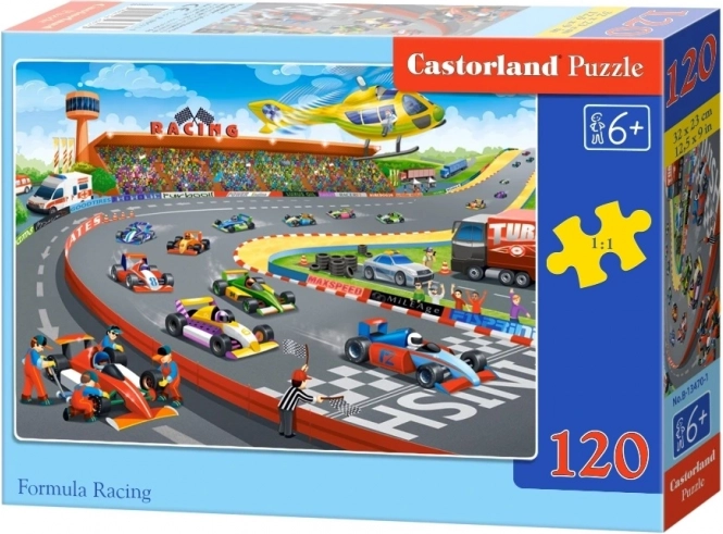 Zabavna otroška sestavljanka s 120 kosi z motivom FORMULA RACING bo razveselila male oboževalce hitrih avtomobilov. Po sestavi nastane slika velikosti 32 × 23 cm, ki navduši z kakovostnim tiskom in živahnimi barvami. Odlična izbira za razvoj zbranosti in potrpežljivosti od 6 let dalje.