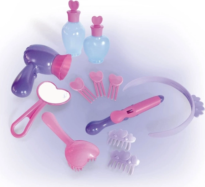 - Toaletna mizica, stolček, 12 kosov dodatkov (stekleničke, sušilec za lase, naglavni obroč, sponke ipd.)