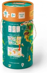 Ta ustvarjalni komplet DODO otrokom ponuja zabaven način spoznavanja svetovnih živali. Dvostranske sestavljanke s 40 koščki so idealne za majhne roke, plakat pomaga pri orientaciji, kartice z nalogami pa dodajo še več učenja skozi igro. Nalepke spodbujajo ustvarjalnost in veselje ob dokončanih nalogah.