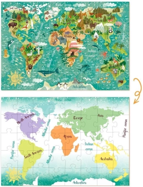 - Dvostranske sestavljanke (40 koščkov) – dve ilustraciji v eni za dvojno zabavo.