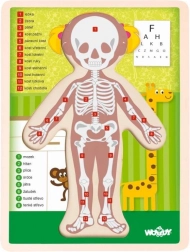 Lesena izobraževalna sestavljanka s temo človeškega telesa je idealen pripomoček za otroke od 3. leta starosti, ki želijo spoznavati anatomijo in delovanje človeških organov.