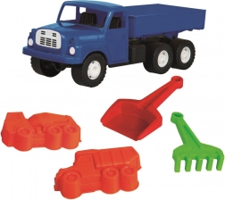 S tem peskovnim setom si bodo otroci privoščili veliko ustvarjalne zabave. Robustno vozilo Tatra s kesonom (30 cm) prepelje pesek, peščene kolačke in modelčke v obliki tovornjaka in mešalca, kar spodbuja njihovo domišljijo. Grabljice in ergonomsko oblikovana lopatka pomagata pri gradnji cest, gradov in tunelov.