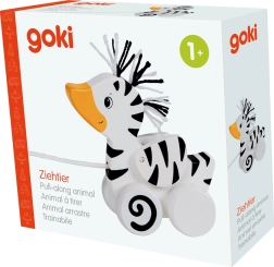 Ta lesena vlečna račka z zebrastim vzorcem je idealna igrača za male raziskovalce. Zahvaljujoč robustni konstrukciji iz masivnega lesa in gladkim robovom je varna in prijetna na dotik. Pri vlečenju se račka spremeni v zabavnega motivatorja za hojo ter pomaga razvijati grobo motoriko in občutek za ravnotežje.