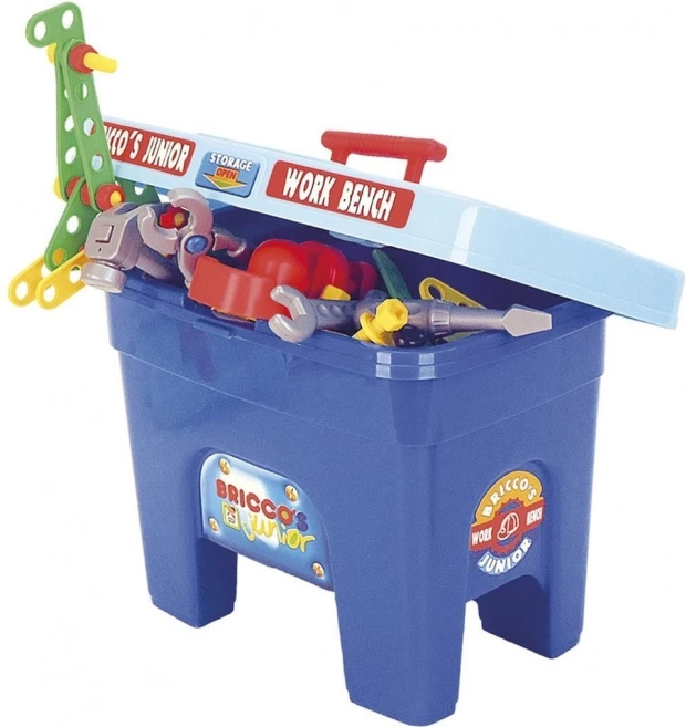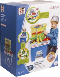 Odkrijte neskončno zabavo s prenosno delovno mizo, ki otrokom omogoča, da postanejo mali obrtniki. Ta barvni komplet vsebuje 53 delov, vključno s čelado, ki doda pravi občutek dela. Otroci lahko ustvarjajo različne konstrukcije in se preko igre učijo osnov mehanike in logike.