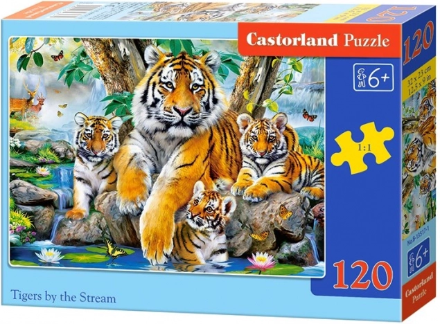 Ustvarite osupljivo sliko Tigrice ob potoku s pomočjo te sestavljanke s 120 kosi. Idealna je za otroke od 6 let naprej, ki iščejo zahtevnejše izzive.