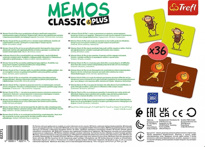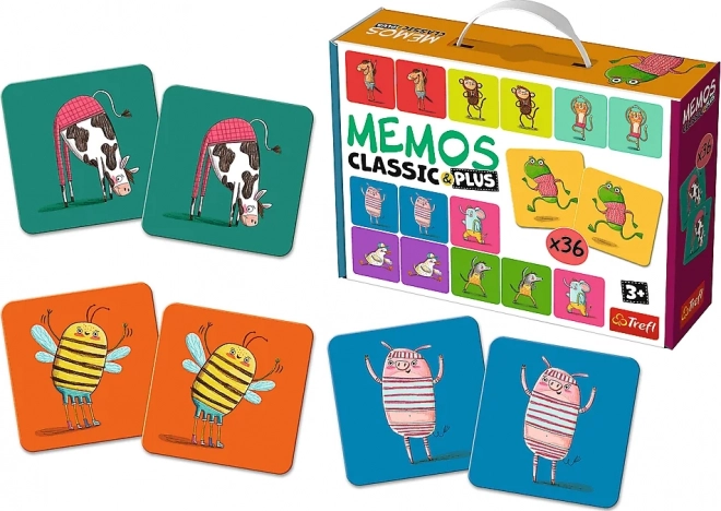 Pexeso Classic Plus Živalice v gibanju 3v1: tri spominske igre, velike kartice in škatlica z ročajem. Razvija spomin in koncentracijo. Odlično za doma in na poti.