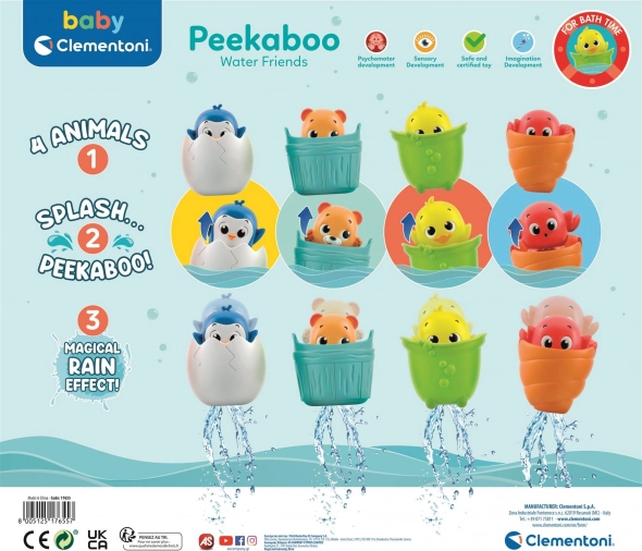 Ta igriva račka iz kolekcije Baby Clementoni prinaša v kopel interaktivno zabavo. Potopite jo pod vodo in opazujte, kako iz varnega »skrivališča« pokuka. Ko jo dvignete, voda odteka skozi drobne odprtine, račka pa se znova skrije – otroci tako znova in znova doživijo trenutek presenečenja.