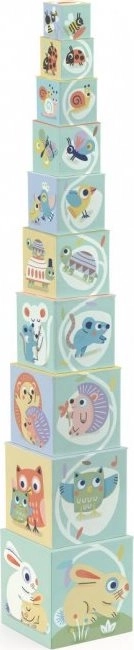 S škatlasto stolpom Gozdna živalca otroci ne samo sestavljajo kocke, ampak se tudi učijo vstavljati jih eno v drugo. Ta igrača spodbuja razvoj fine motorike in logičnega razmišljanja. Pri sestavljanju se otroci učijo prepoznavati osnovne barve, oblike in številke.