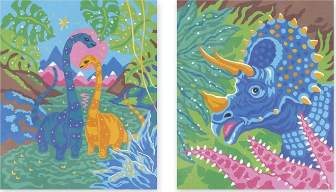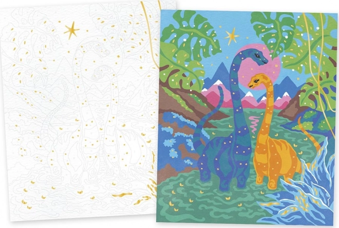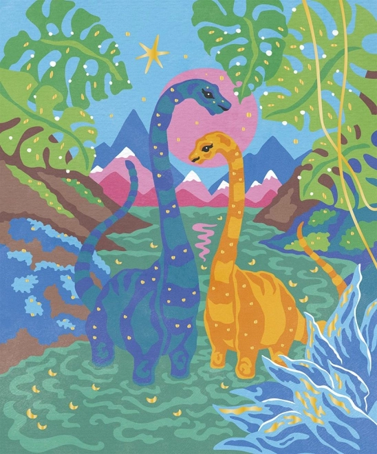 Ta ustvarjalni komplet je idealen za otroke in odrasle, ki želijo hkrati sprostitev in razvoj svojih umetniških veščin. Vsaki številki ustreza določena barva, zato je slikanje intuitivno in prinaša veselje ob postopnem odkrivanju barvite dinozavrske scene.