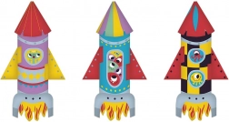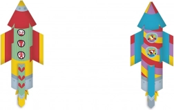 Set vsebuje 10 listov za sestavo do 5 izvirnih raket s pisanimi vzorci, ki pritegnejo na prvi pogled.