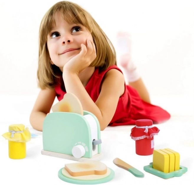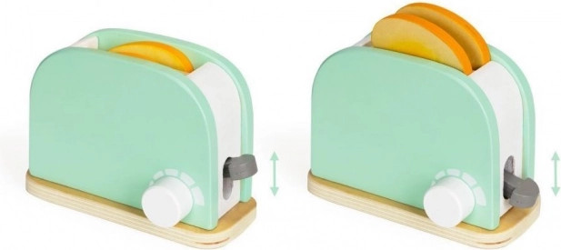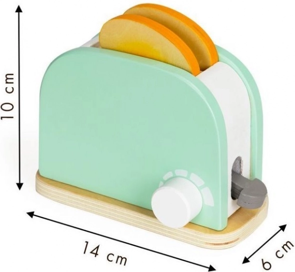 Predstavljamo vam odličen lesen toaster z zajtrkovim setom, ki bo vašim otrokom zagotovil ure ustvarjalne zabave. Set je zasnovan za spodbujanje njihove ustvarjalnosti in jim omogoča posnemati pripravo pravega zajtrka.