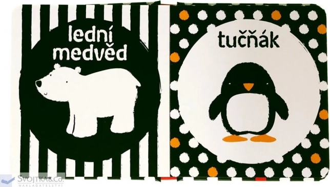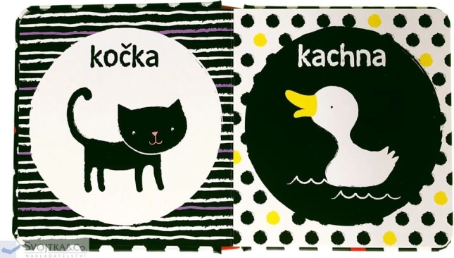 Ta prva črno-bela knjižica z živalmi je zasnovana tako, da spodbuja vizualno zaznavanje novorojenčkov in dojenčkov. Visok kontrast črno-belih slik z nežnimi barvnimi poudarki je za zgodnji razvoj vida primernejši kot pisane ilustracije. Dojenček lahko knjigo varno sam prime in si jo znova in znova ogleduje.
