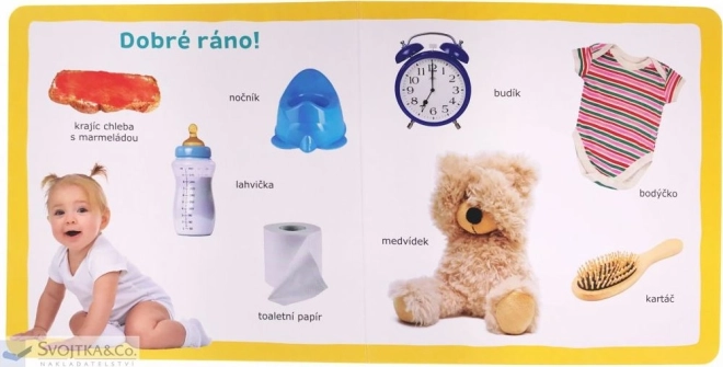 Ta privlačna kartonka s fotografijami pomaga otrokom preprosto in zabavno spoznavati svet okoli sebe. Predmeti, oblačila, hrana, živali, barve in igrače so tematsko razvrščeni, zato si otroci zlahka prisvojijo nove besede in jih povežejo z resničnimi slikami.