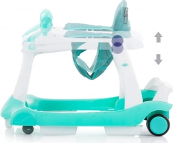 Podpira prve korake na dva načina – z oporo v sedežu ali kot potiskalni hojček. Zahvaljujoč sprednjim kolesom, ki se vrtijo za 360°, in 3 višinskim nastavitvam sedeža se zlahka prilagodi rasti in spretnostim otroka.