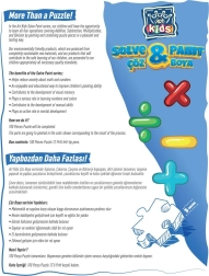 Ta izdelek je zelo prijazen okolju, saj je izdelan iz popolnoma trajnostnih surovin. Vsebina paketa vključuje 100 kosov puzzle in 12 flomastrov, ki otrokom omogočajo barvanje glede na rezultate izračunov na posameznih delih. Navodila so preprosta: povežite dele in glede na rezultat izračuna uporabite prostor na zemljevidu barvo z ustrezno številko.