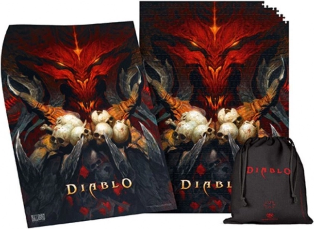 Ta sestavljanka prikazuje ikonično umetniško delo iz serije iger Diablo, z zloveščim obrazom, obdanem z lobanjami.