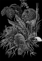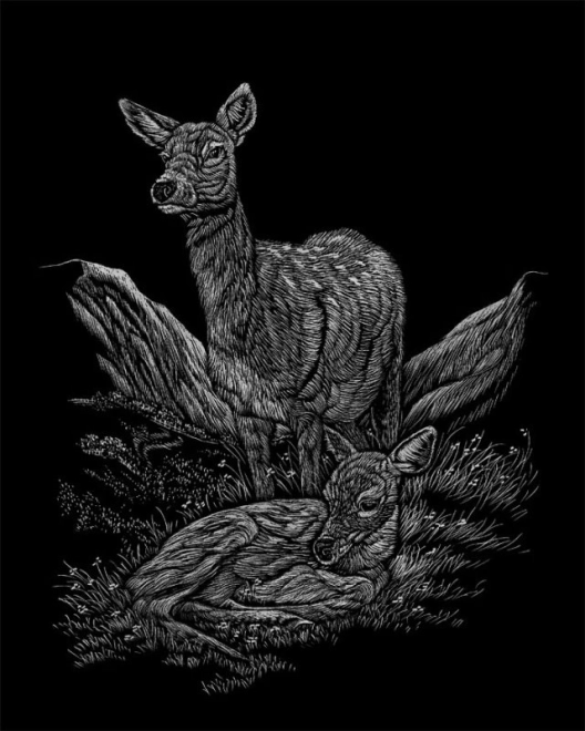 Ta praskalni blok prinaša ure zabave za otroke in odrasle. S priloženim peresom preprosto postrgajte linije predtiskanega motiva in pod črno plastjo se postopoma razkrije zlato, srebrno, mavrično ali holografsko ozadje. Tema divjih živali Severne Amerike bo navdušila male raziskovalce in ljubitelje narave, z angleškimi opisi pa boste na nevsiljiv način vadili besedišče.