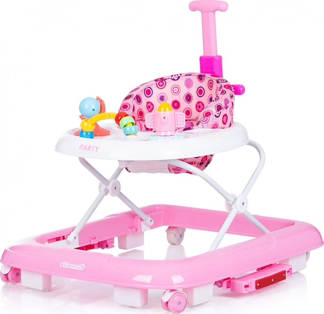 Hojica CHIPOLINO Party 4v1 je odlična rešitev za malčke do 12 kg, ki še ne hodijo samostojno, vendar že samostojno sedijo. Združuje stabilno konstrukcijo s široko osnovo in gladkimi kolesci za preprosto gibanje po domu. Z preglednim igralnim panelom z barvami in zvoki spodbuja otroško ustvarjalnost ter razvoj čutov.