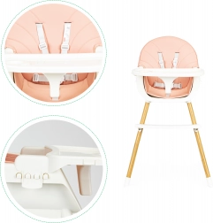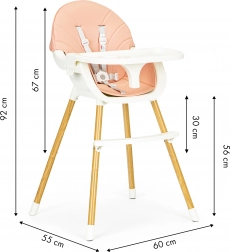 Univerzalni jedilni stolček 2v1 ECOTOYS raste z vašim malčkom. Zahvaljujoč zlahka odstranljivim nogam in podnožniku ga v hipu spremenite iz visokega stolčka v nizek stolček za samostojno hranjenje, risanje ali igro. Praktični pladenj s 3-stopenjsko nastavitvijo in povišanim robom pomaga ohranjati red pod nadzorom.