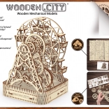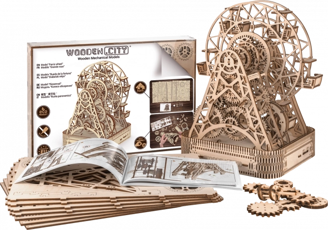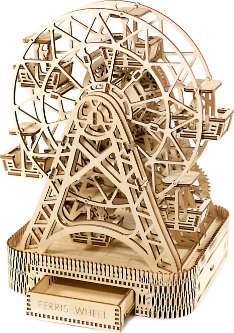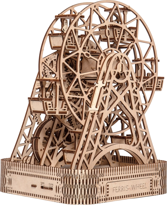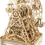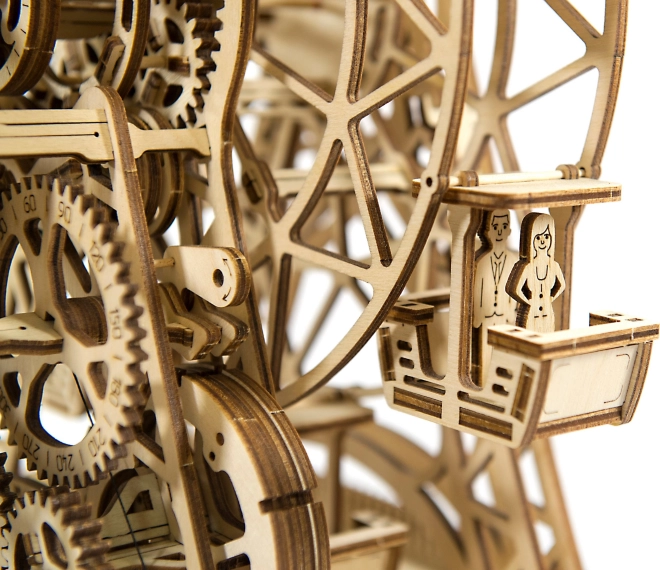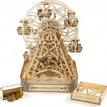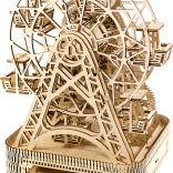 Eno navijanje omogoča vrtenje kolesa eno minuto, pri čemer je v vsaki od šestih kabin prostor za potnike. Čudovito izrezljano stojalo in mehanski deli obujajo spomine na legendarni izum Georgea Ferrisa. Komplet je izdelan iz visoko kakovostne brezove vezane plošče in ne potrebuje lepila ali orodja.