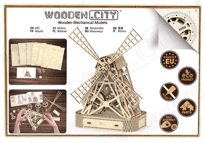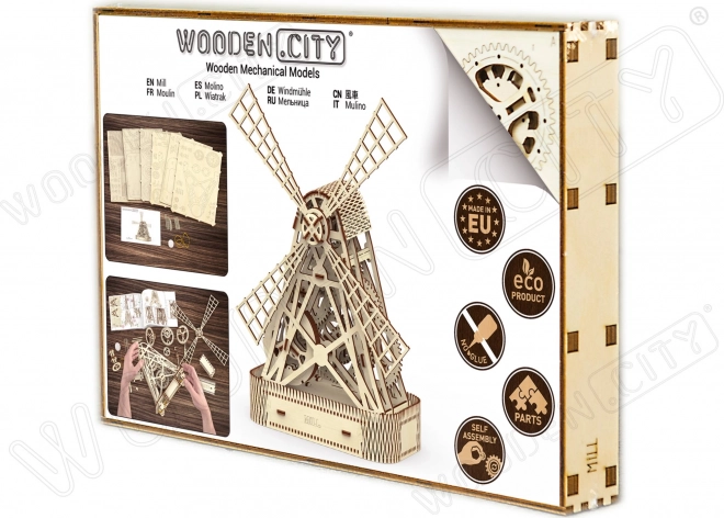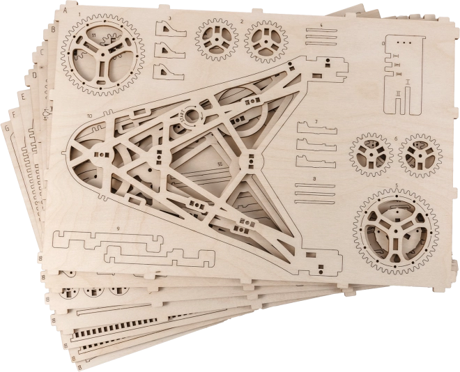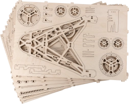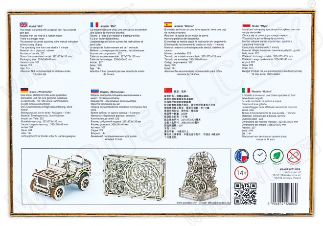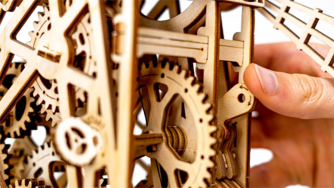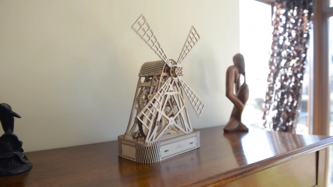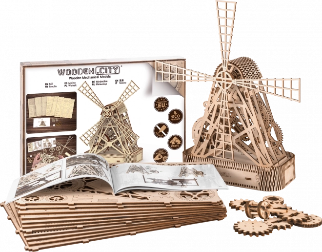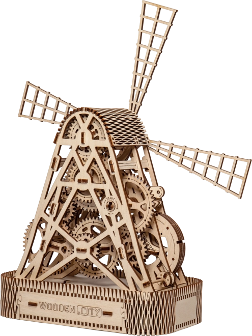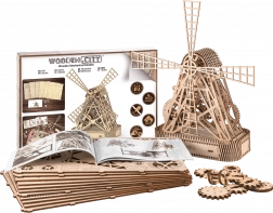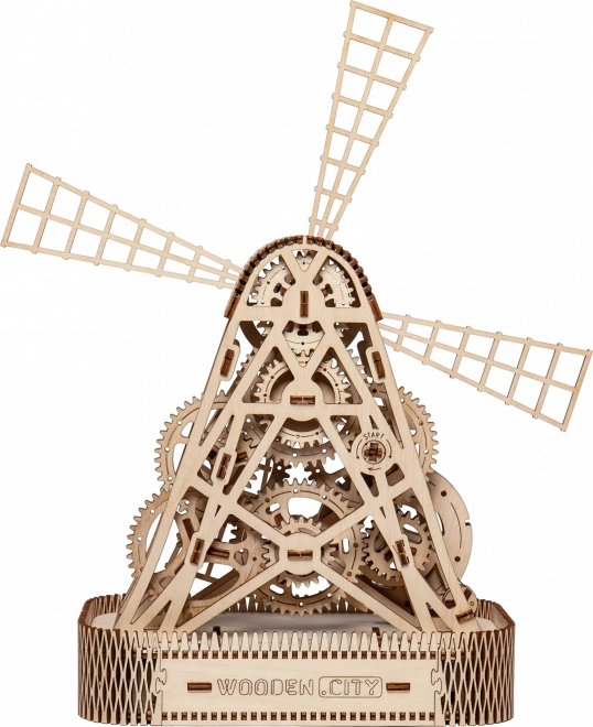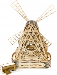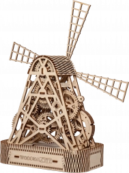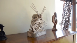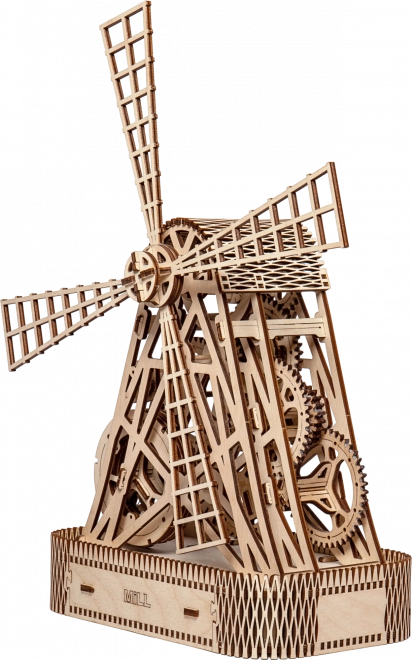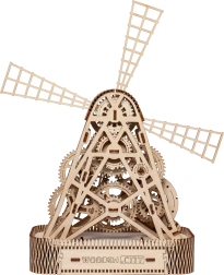 Leseno 3D puzzle Mlin je več kot le sestavljanka – je to realni mehanski model, ki po sestavljanju postane funkcionalno umetniško delo. Brez uporabe lepila ali orodja sestavite model iz ekološke brestove vezane plošče, ki skriva skrivnosti vetrnic.