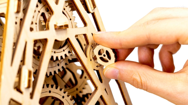 Čeprav je sestavljanje zapleteno, je lahko in neverjetno fascinantno. Za natančno in gladko delovanje priporočamo voskanje osi in zobnikov. Ta sestavljanka je popolno darilo za ljubitelje mehanike in naravnih lepot.