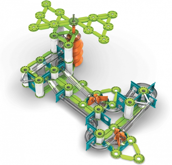 Mehanski “motor” poganja sila gravitacije, kar prinaša edinstveno igralno izkušnjo. Enostavno kombiniranje z drugimi seti razširi možnosti igre z novimi elementi, kot so magnetne katapulte, gravitacijski motorji in dvigala. Tako razširjena dirkalna proga prinaša več izzivov in bolj zanimivo igro.