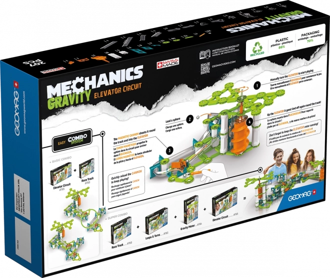 Sestavljanka Geomag Mechanics Gravity vam omogoča odkrivanje fascinantnega sveta magnetizma in mehanike. Igrača je namenjena šolarjem od 8. leta dalje in je izdelana iz reciklirane plastike. Nekateri deli sestavljanke se lahko vrtijo in sprožajo verižne reakcije zaradi magnetnega privlaka in odboja.